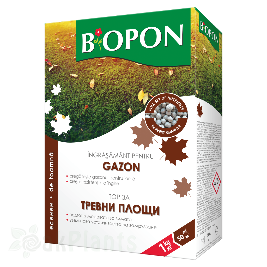 Гранулираният есенен тор BIOPON е специализирана формула за подготовка на тревната площ преди настъпването на студения сезон. Продуктът осигурява балансирано подхранване, което укрепва корените и повишава устойчивостта на тревата към зимни условия.