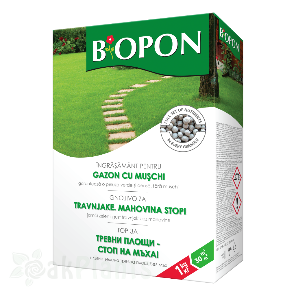 BIOPON е марка с доказана ефективност в поддръжката на тревни площи. Гранулираната форма осигурява дълготрайно действие и равномерно разпределение на хранителните вещества.Формулата е балансирана така, че да подхранва без риск от изгаряне на тревата. Това прави продукта подходящ както за професионално, така и за хоби градинарство.Опаковката от 1 кг е достатъчна за третиране на площ от 25 до 35 м², в зависимост от състоянието на моравата.
