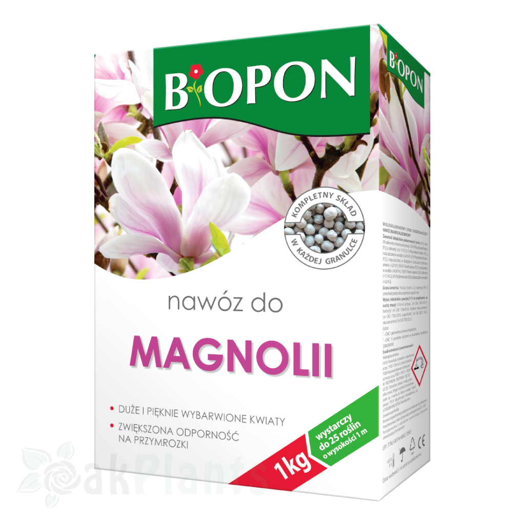 Гранулиран тор за магнолия BIOPON е специализиран продукт, създаден за оптимално подхранване на магнолиите през целия вегетационен сезон. Многокомпонентната формула осигурява балансирано хранене и подпомага обилното цъфтеж.Състав и хранителна стойност