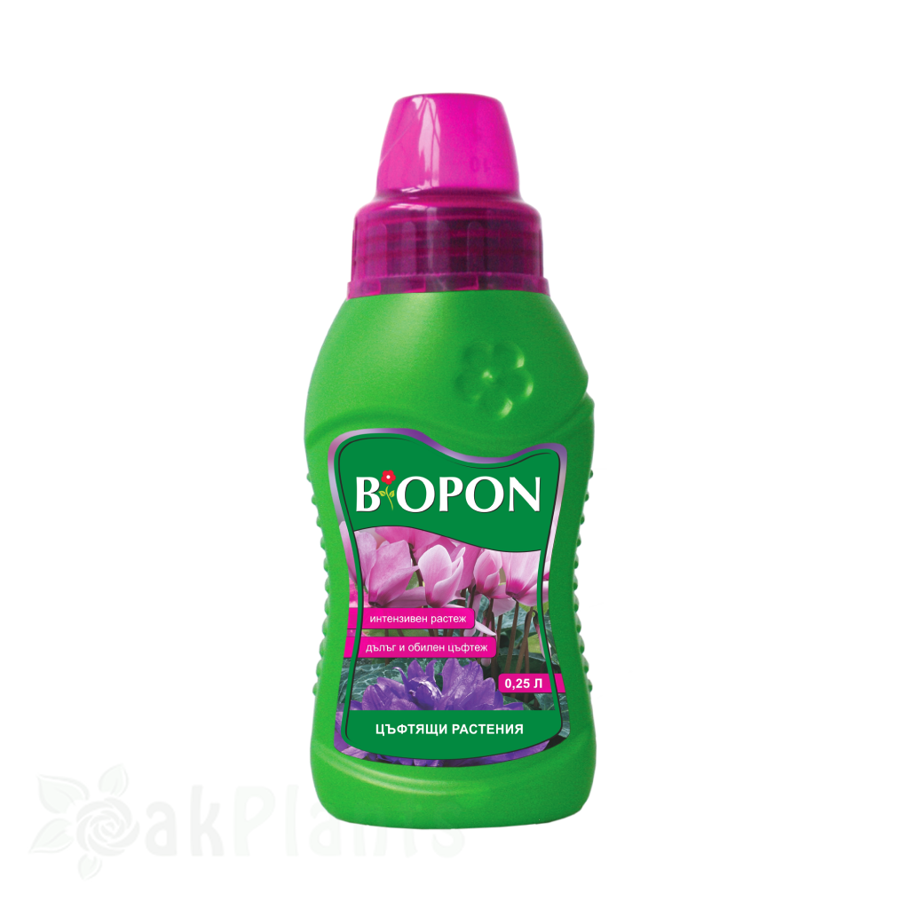 BIOPON се прилага през активния вегетационен период. Подходящ е за саксийни и градински цъфтящи видове.Концентратът се разрежда с вода според указанията на етикета. Прилага се чрез поливане или листно подхранване.