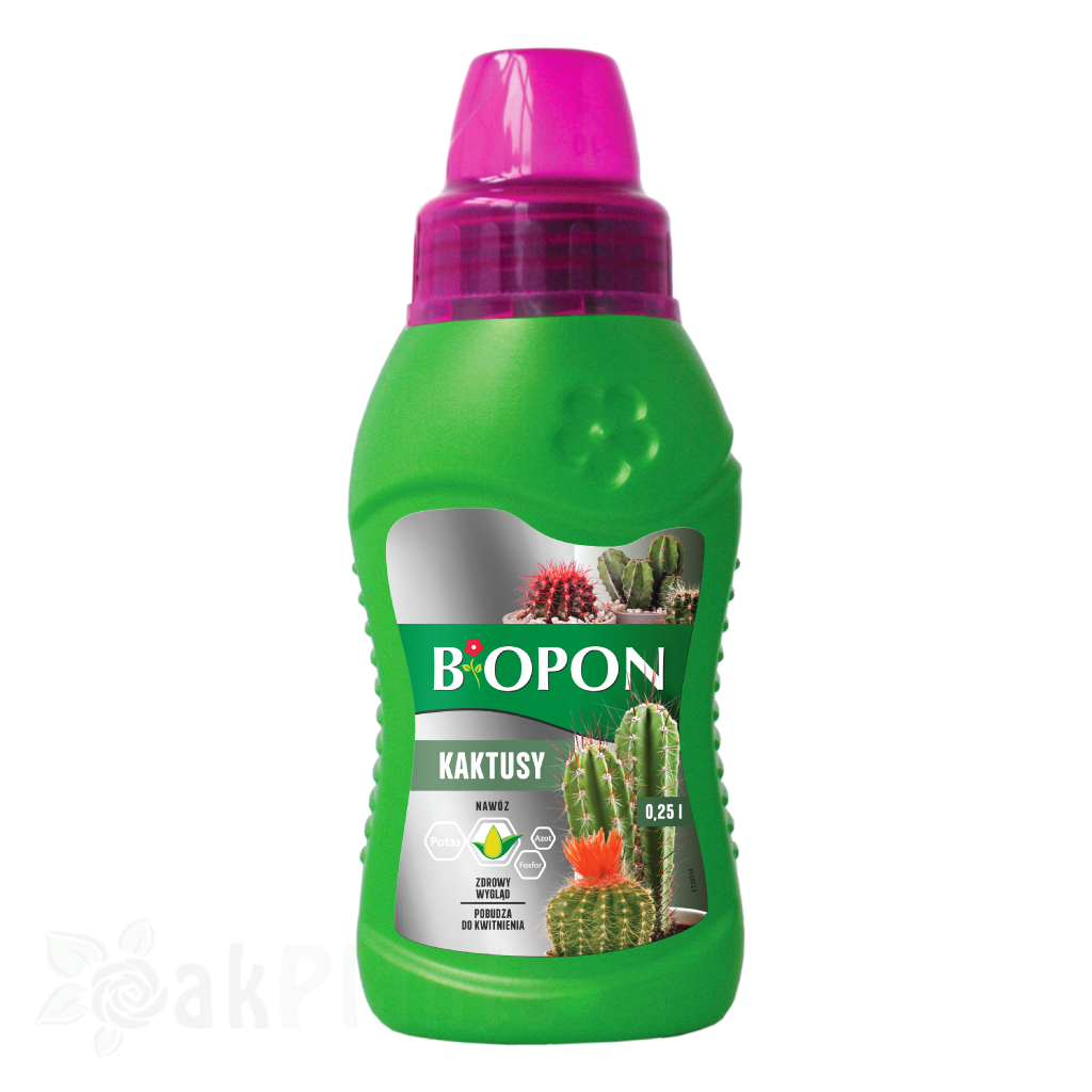 Течен тор за кактуси BIOPON е концентриран разтвор, специално разработен за подхранване на сукулентни растения. От един флакон 0.25л получавате до 50 литра готов разтвор за поливане.