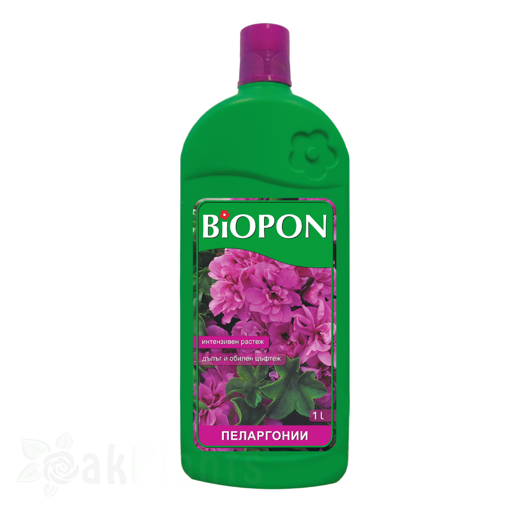 **Торът BIOPON** за пеларгонии е ЕО тор с формула NPK 4:5:6, обогатена с микроелементи.- Азот (N) – 4% – за здрав растеж и наситено зелени листа