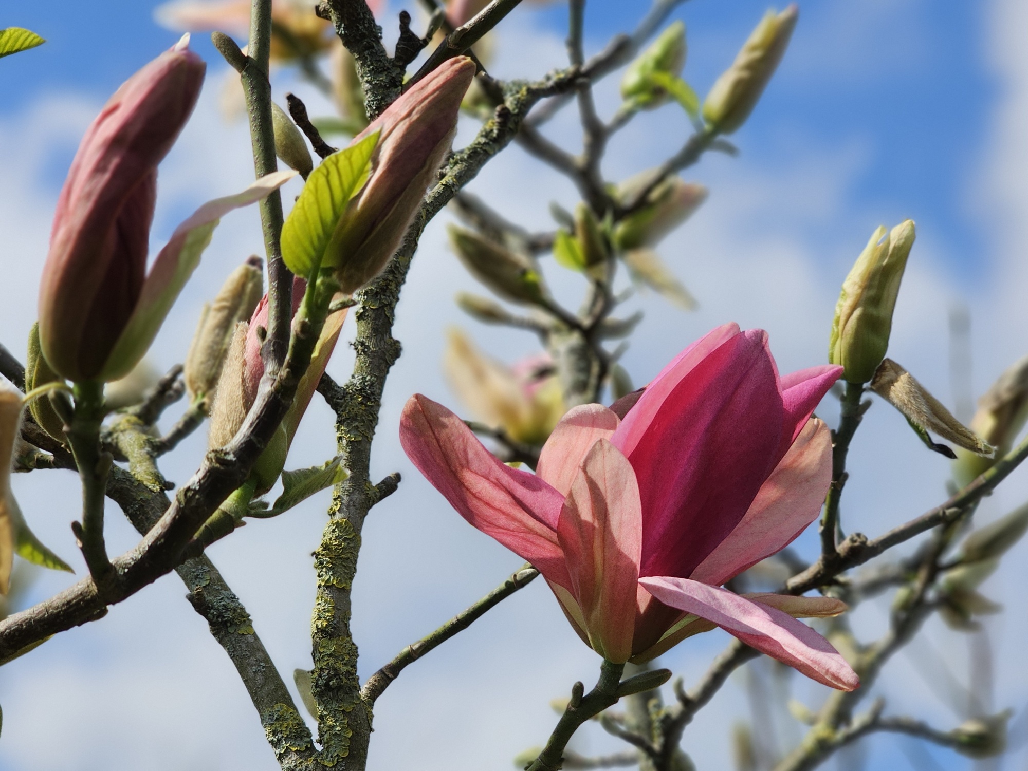 Magnolia Daybreak е изящен сорт с едри, изправени цветове в нежен розов цвят, които се появяват рано напролет и създават елегантен акцент в градината. Формата на цветовете е стройна и изтеглена, а свежият розов тон изпъква красиво на фона на все още прохладния пролетен пейзаж.